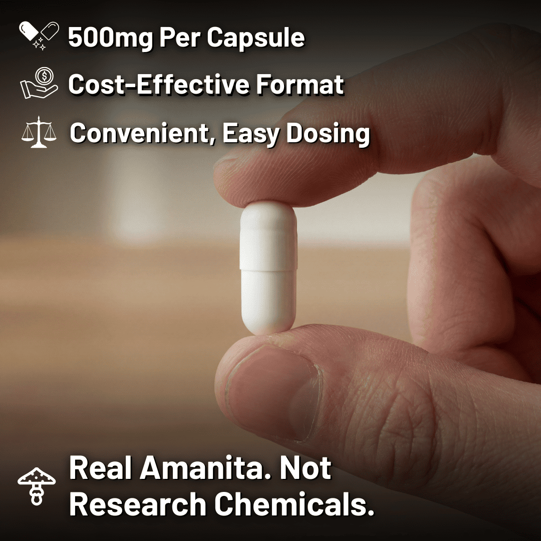 Serving Size: One Amanita muscaria supplement contains 500mg of Amanita powder.