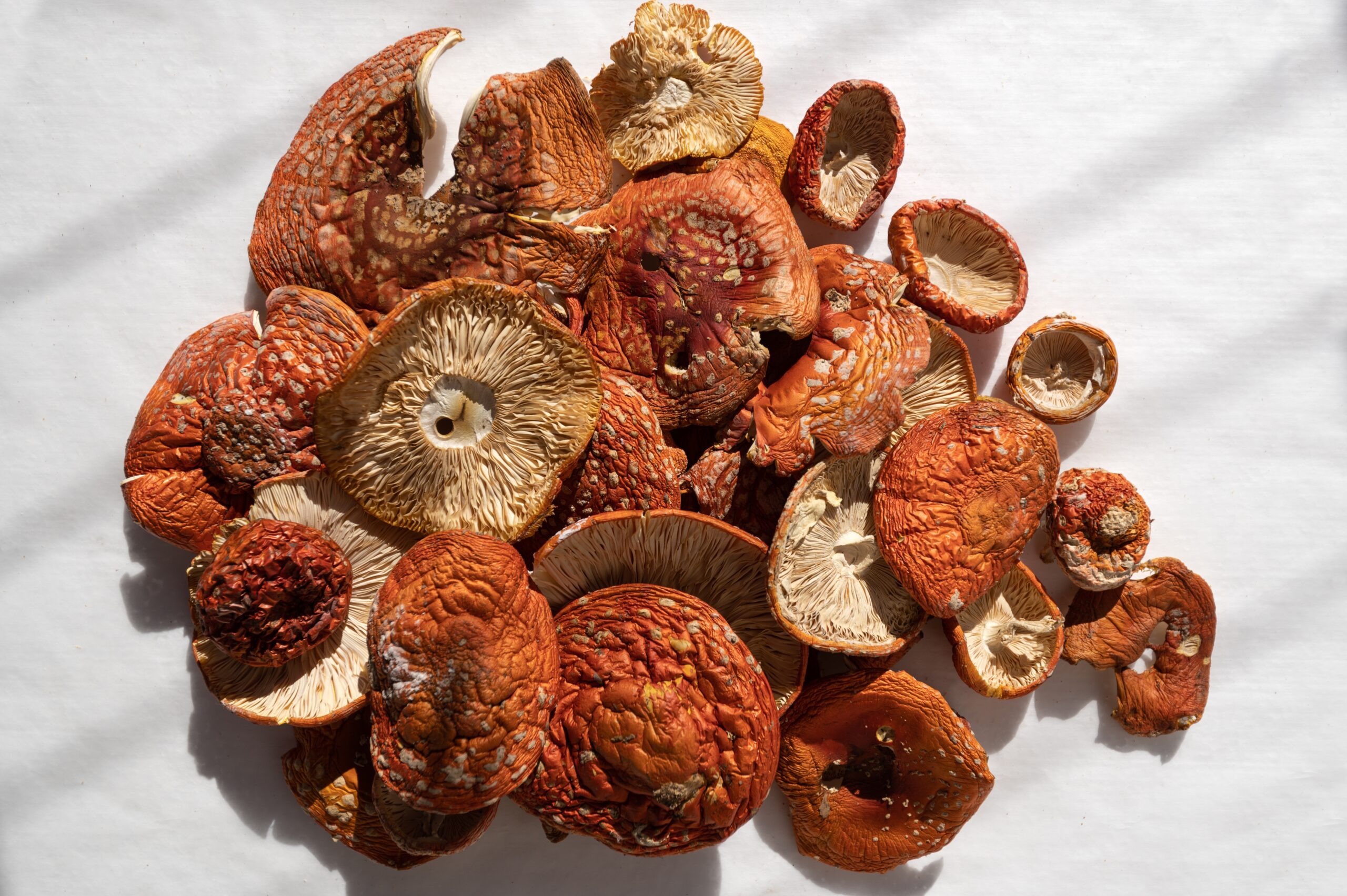 Currently, we are offering Amanita caps from four different regions: Nordic, Baltic (Lithuanian) Amanita, Siberian Amanita, and Carpathian (Ukrainian) Amanita. The muscimol and ibotenic acid content in each variety is very similar, but some people find notable differences when handling each variety.