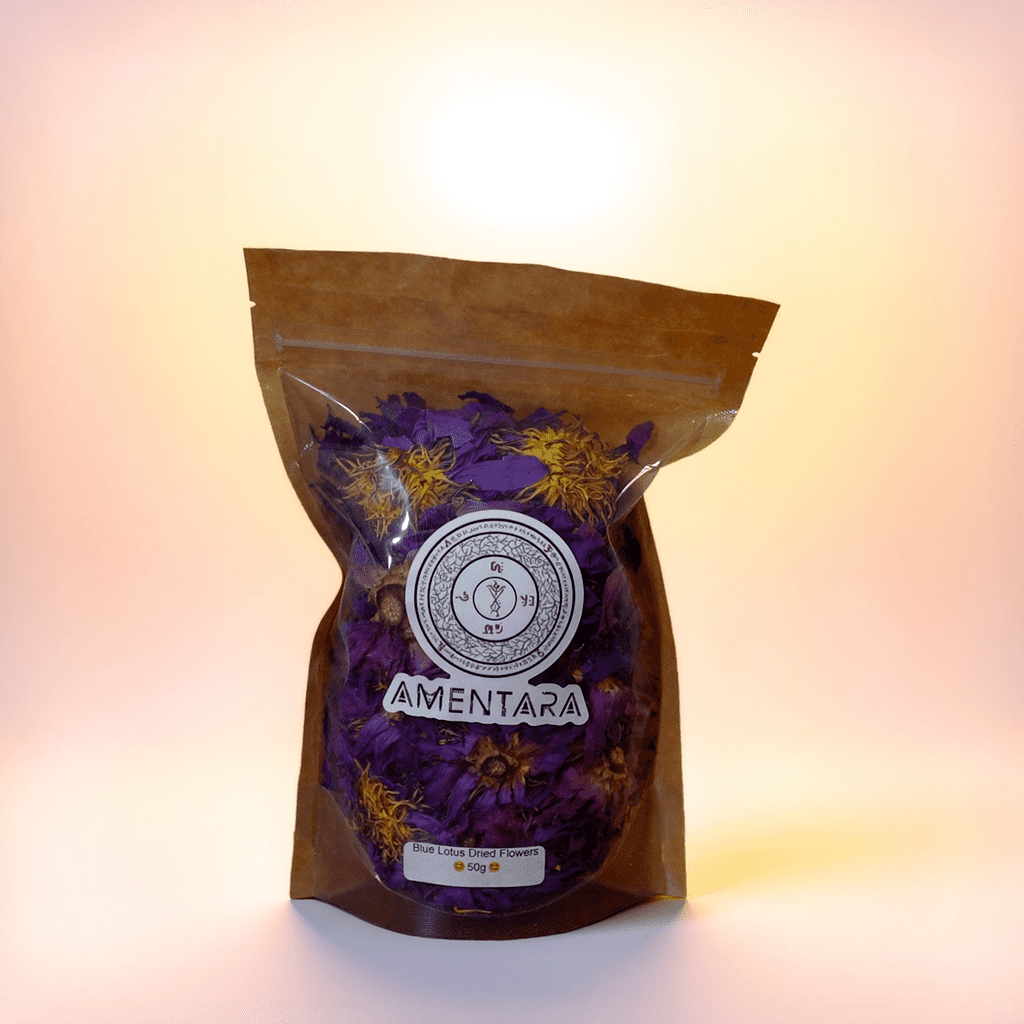 Our Blue Lotus flowers are a modern offering of one of history’s most revered plants. Native to the Nile River and parts of Asia, this sacred flower has been used for thousands of years in ceremony, relaxation, and spiritual practice. Rich in apomorphine and nuciferine, Blue Lotus is known to promote a state of calm euphoria: often described as heart-opening, mildly aphrodisiac, and emotionally centering. We invite you to watch yourself spiritually bloom while you partake with intention. Each flower is carefully dried to preserve its natural aroma and potency. Perfect for tea, tincture, or meditation rituals, our Blue Lotus is sourced with care and packaged with the integrity that defines all Amentara botanicals.