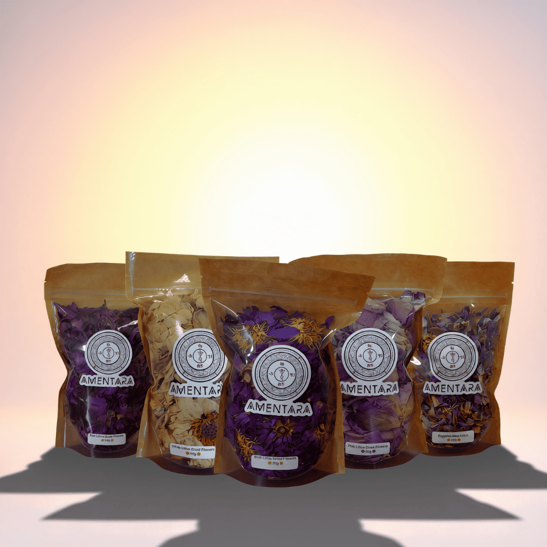 This exclusive set includes five premium lotus varieties – Blue, Red, Pink, White, and the elusive Egyptian Blue Lotus – each in 25g quantities, bundled together at 27% off. It’s the ultimate collection for researchers, ritualists, and those drawn to the deeper side of ethnobotanicals.